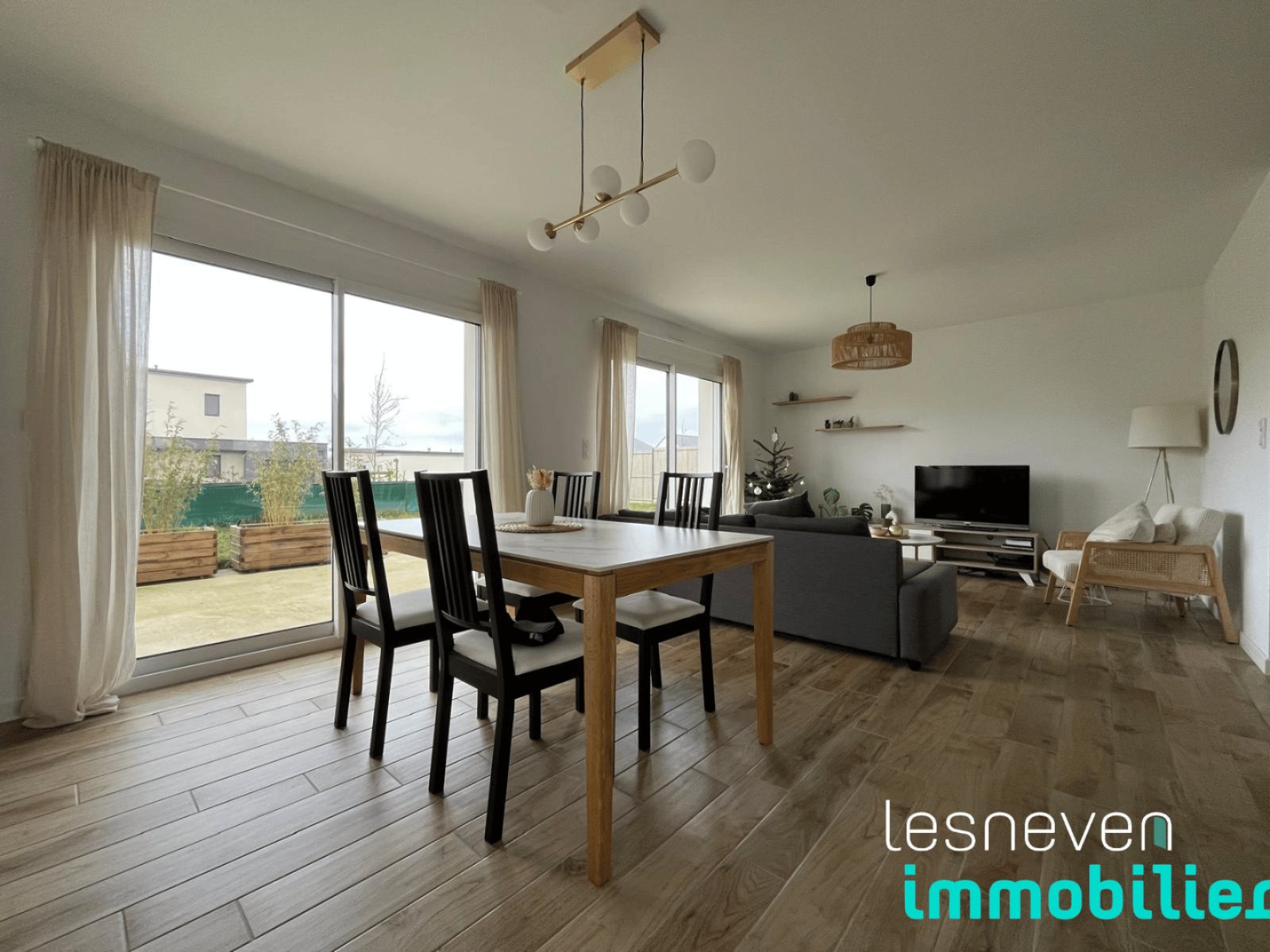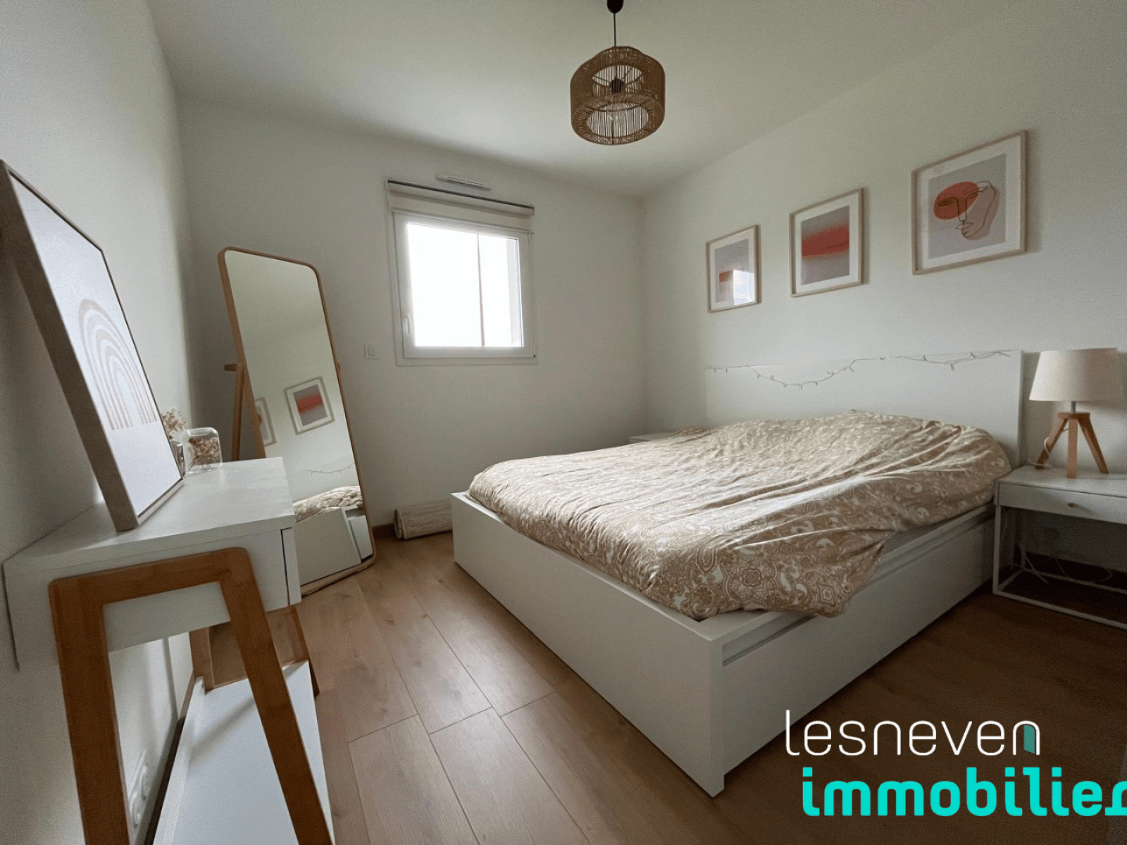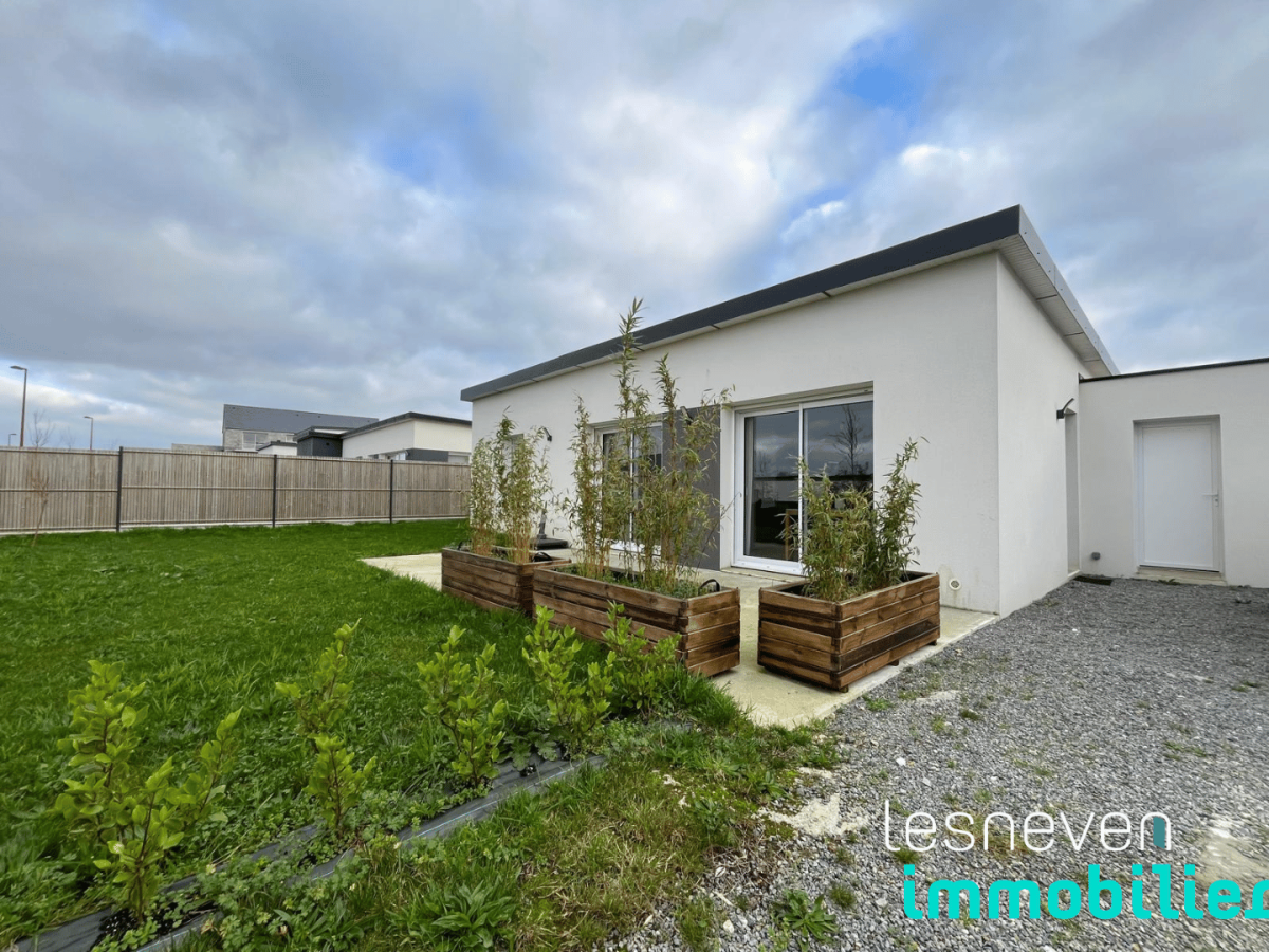 Idéalement située à proximité immédiate du centre-ville, Lesneven Immobilier vous présente cette maison de plain-pied construite en 2023 qui saura vous séduire par sa modernité et sa fonctionnalité. Elle offre une belle pièce de vie lumineuse avec une cuisine ouverte, aménagée, parfaite pour les moments de convivialité. L’espace nuit se compose de deux chambres confortables, complétées par un local technique pratique pour le rangement et l’organisation du quotidien.