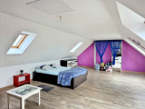À l’étage, la maison dispose de deux grandes chambres réparties sur deux niveaux. Il est cependant possible de réaménager l’espace afin de créer des chambres supplémentaires selon vos besoins.