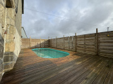 Ce corps de ferme restauré propose un ensemble de bâtisses. Commençons par l’habitation principale : vous y découvrirez une vaste pièce de vie avec cuisine ouverte, offrant un bel espace de 44 m². Depuis cet espace, vous apprécierez l’accès direct à la terrasse et à la piscine.